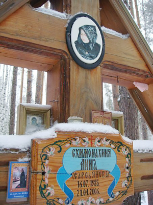 Она мирно отошла ко Господу 21 апреля 2006 года на Страстной Седмице, в Великую Пятницу, в тот самый час, когда Господь висел на Кресте, но душа уже покинула Его. Хоронили её в Пасху, со словами пасхальной радости, и отец Сергий восклицал: «Христос Воскресе! Схимонахиня Анна, Христос Воскресе!» И у всех, кто был на её похоронах, было ощущение такой радости, такого света!»