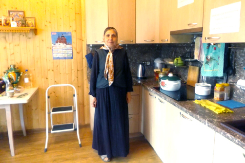 Всех пришедших, кого возможно уместить в большой общей комнате, усаживают за большой стол заботливые помощницы отца Илия. Хлебосольный стол накрыт всегда и для всех всем тем, что нужно для чая.