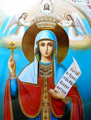 Моли Господа, чистая девице, моли Милосердаго, святая мученице, моли Жениха твоего, непорочная Христова невесто, да твоими молитвами пособствоваши, мрака же греховнаго избывше, во свете истинныя веры и деяний Божественных внидем во свет вечный дне невечерняго, во град веселия приснаго, в немже ты ныне светло блистаеши славою и веселием безконечным, славословящи и воспевающи со всеми Небесными Силами Трисвятительное Единое Божество, Отца и Сына и Святаго Духа, ныне и присно и во веки веков. Аминь.